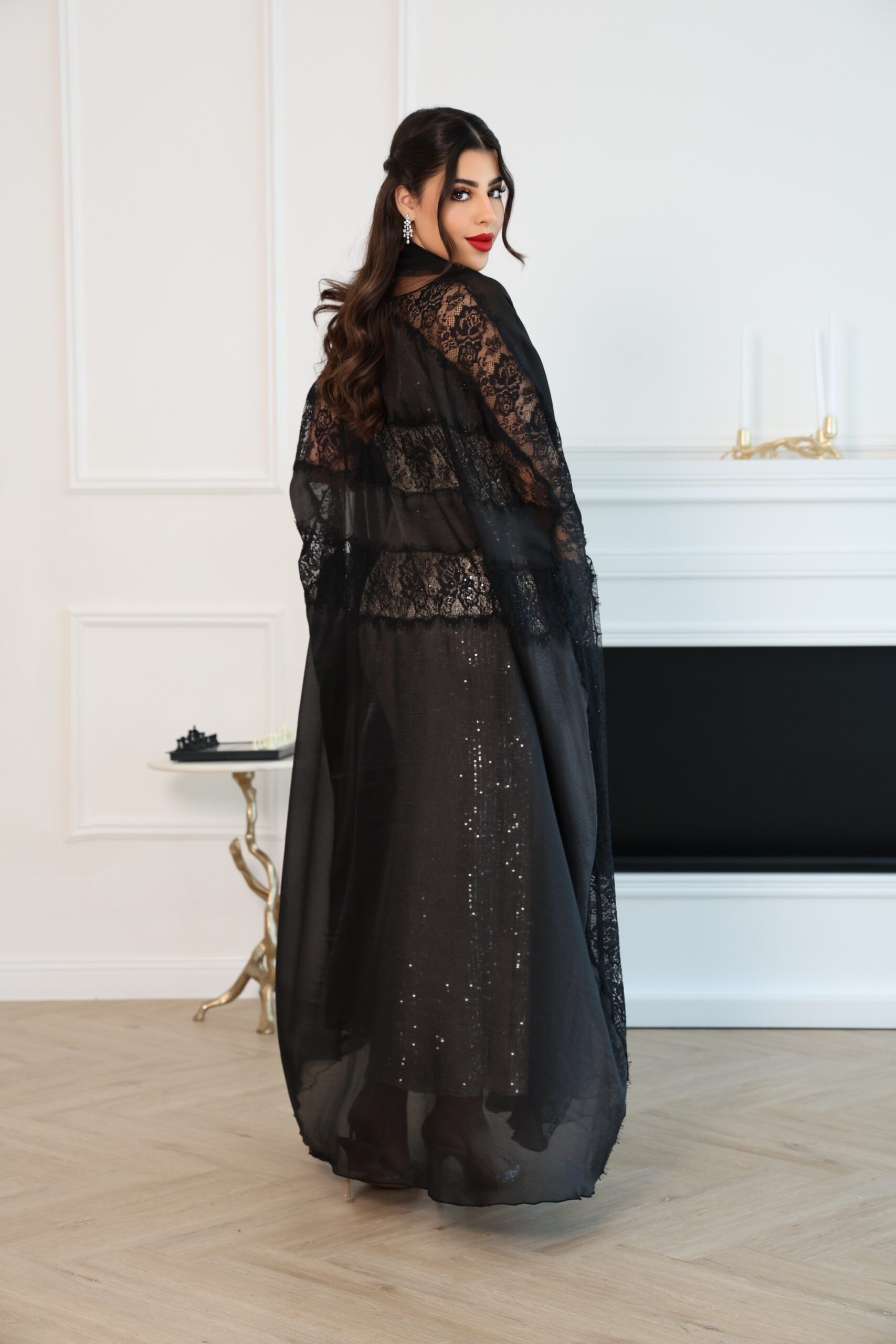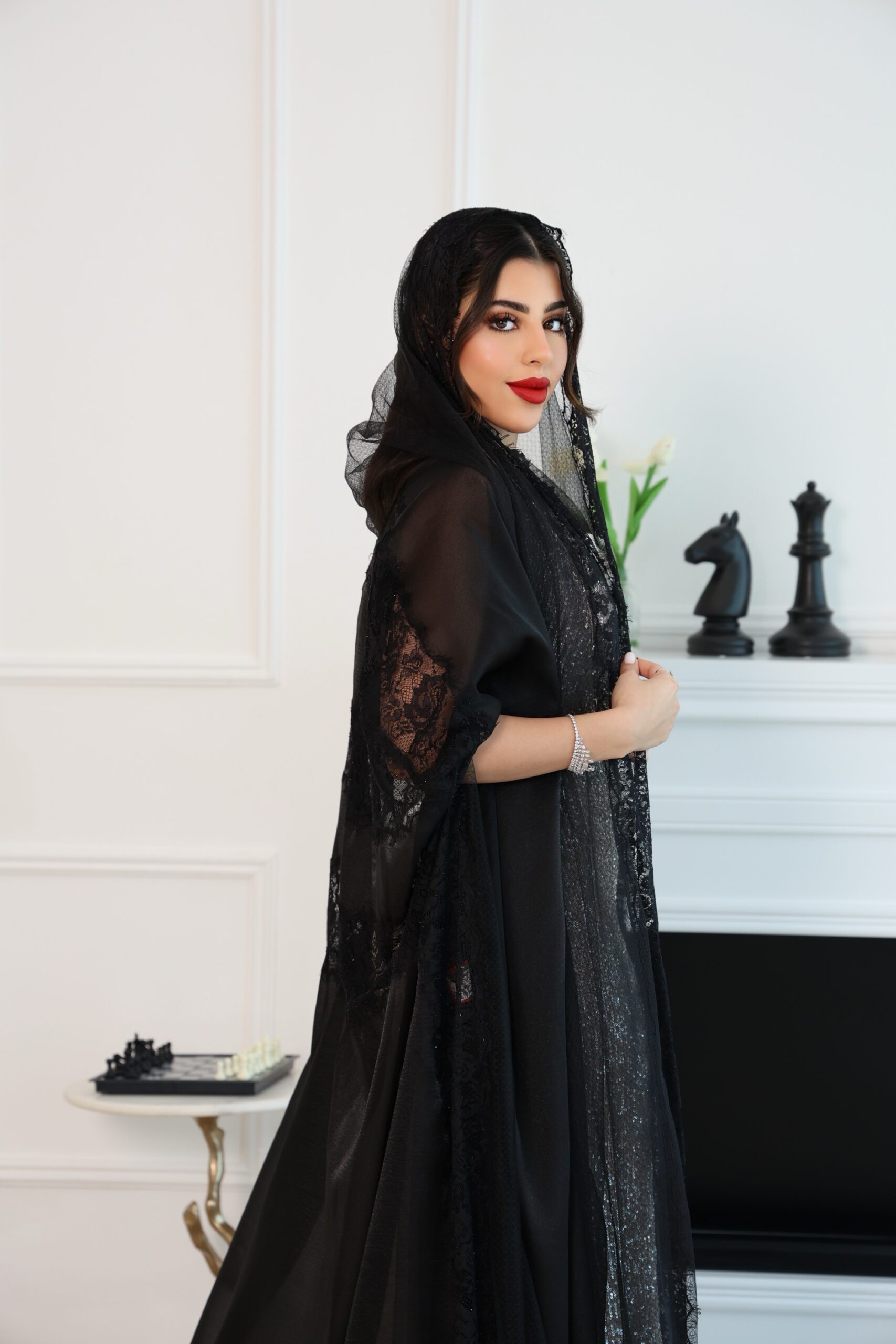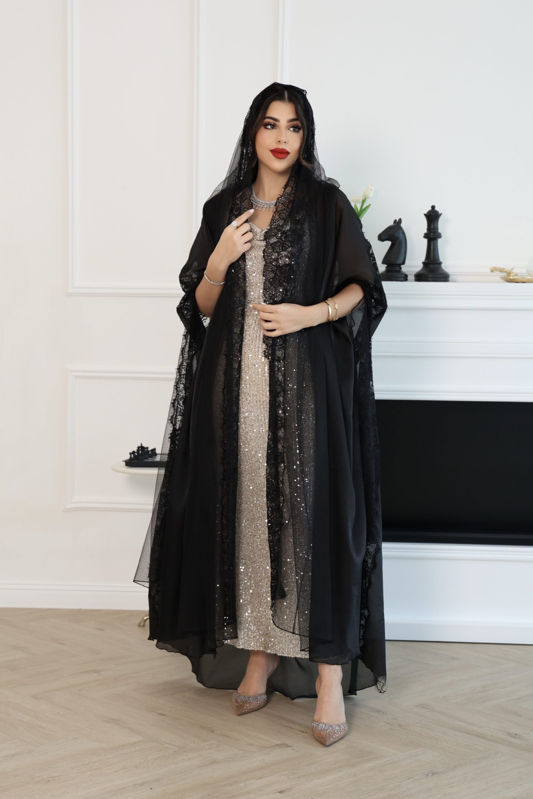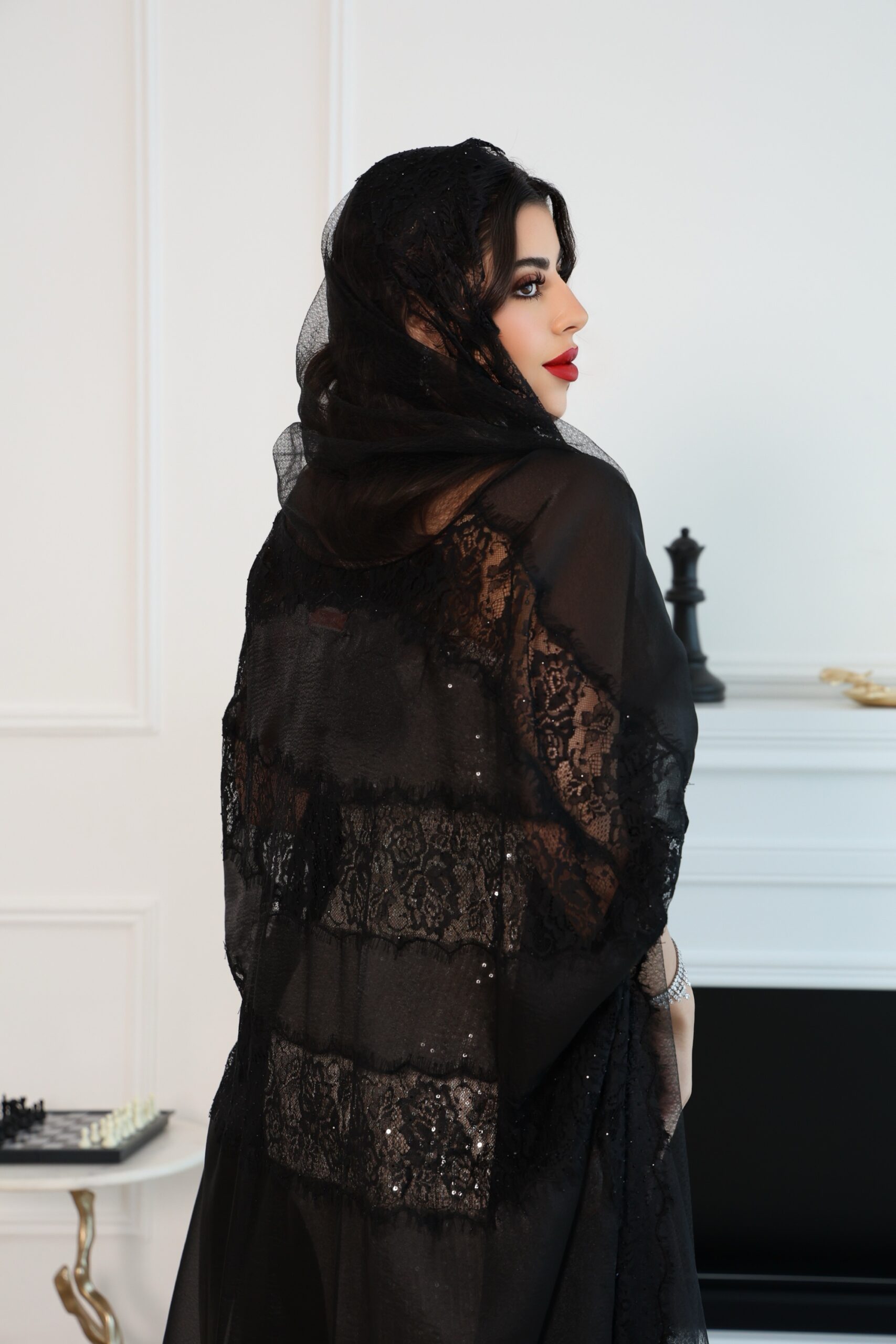 وصف المنتج: عباة فري سايز تسمى باللهجة الإماراتية (بالشّل) و تكون مناسبة لأغلب المقاسات المتداولة و ترتفع من عند الجوانب مع حركة الايد .من دون فصوص